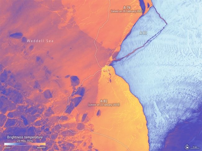 Sementara pada 2024 ini, gunung es yang pecah adalah A-83. Nama ini berasal dari Pusat Es Nasional Amerika Serikat. Nama tersebut diambil dari kuadran Antartika tempat gunung es terlihat pertama kali.