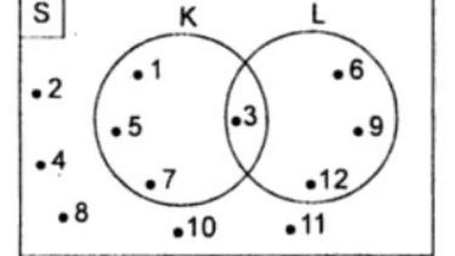 Angka yang berada di tengah merupakan himpunan yang sama antara S, L dan P. Sementara angka yang berada di luar lingkaran adalah milik himpunan S.