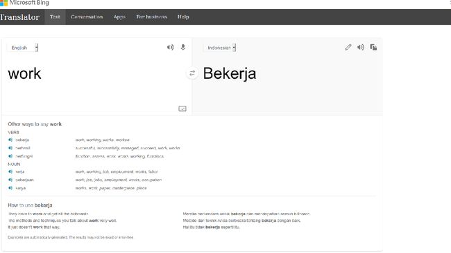 Situs lainnya yang bisa kalian coba adalah Bab.la. Translator ini cocok untuk kalian yang ingin menerjemahkan bahasa kata per kata. Tiap satu kata, kamu bisa mencari definisi, persamaan kata, konjugasi, pengucapan, dan contohnya. Sekali translate, pengguna hanya bisa memasukkan teks sebanyak 1.000 karakter.