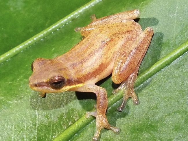 Selain itu, kodok ini memiliki ujung jari kaki dan tangan melebar membentuk piringan membulat. Jari kaki berselaput renang penuh, sedangkan jari tangan berselaput renang pada bagian dasar.