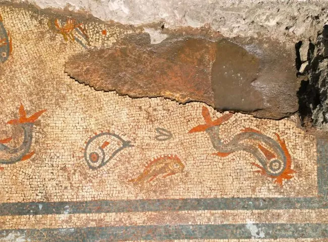 Menurut arkeolog, mosaik megah ini merupakan karya seni yang menggambarkan lumba-lumba dan ikan. Mosaik temuan itu memiliki bentuk seperti 'akuarium yang membeku di dalam batu'.