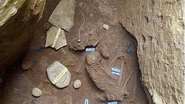 Penanggalan lapisan sedimen di gua, termasuk penanggalan radiokarbon, menunjukkan kerangka itu berasal dari periode Neolitik sekitar 6.000 tahun yang lalu.
