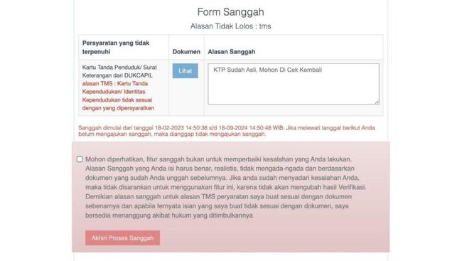 Setelahnya, instansi akan diberikan waktu kembali untuk memverifikasi persyaratan pelamar. Tak bisa sembarangan, alasan yang diajukan dalam masa sanggah harus benar, realistis, tidak mengada-ada, dan sesuai dengan dokumen yang sebelumnya diunggah.