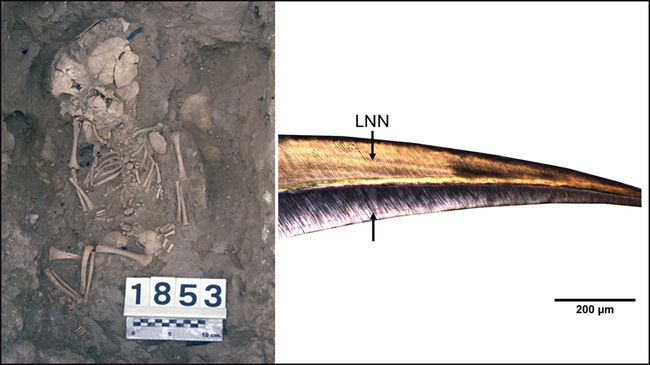 Dalam studi yang terbit di Journal of Archaeological Science, para peneliti menggunakan metode inovatif dengan menganalisis garis gigi susu pada bayi yang baru melalui mikroskop optik dan mikro fluoresensi dengan cahaya sinkron ton untuk mempelajari sisa gigi dari puluhan kerangka bayi.