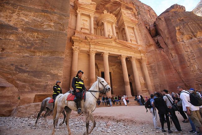 Petra adalah kota kuno yang didirikan oleh bangsa Nabatean sekitar abad ke-4 SM. Kota ini terkenal karena bangunan-bangunannya yang diukir langsung dari tebing batu pasir merah muda dan menjadi salah satu lokasi syuting film Indiana Jones.