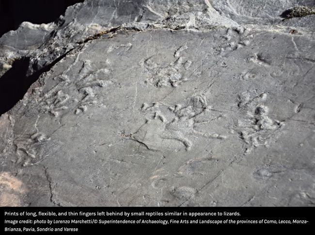 Sisa-sisa fosil ekosistem prasejarah lengkap dengan jejak kaki hewan yang telah punah ditemukan secara tidak sengaja di Pegunungan Alpen, Italia. Fosil ini diketahui berasal dari 280 juta tahun yang lalu.