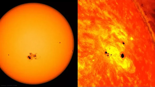 Hasil observasi Solar Dynamics Observatory (SDO) NASA, menemukan bintik Matahari berukuran besar yang secara tampilan tampak seperti lubang yang dalam. Bintik matahari itu terekam dalam video SDO antara tanggal 2-4 Desember 2023 lalu.