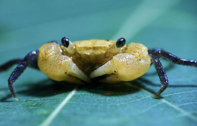 Sementara, kulit luar bagian depan dan kaki yang bercapit (chelipeds) memiliki warna kuning pucat.
