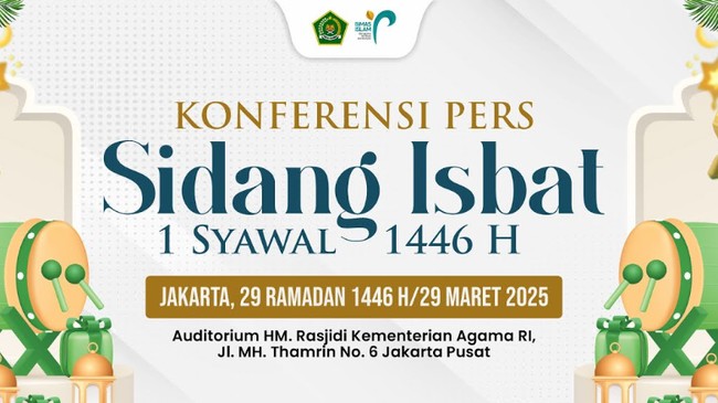 Kementerian Agama (Kemenag) akan segera menggelar sidang isbat untuk menentukan 1 Syawal 1446 H atau Idul Fitri 2025 malam ini Sabtu (29/3/2025). Kapan hasil sidang isbat lebaran 2025 bisa dicek?
