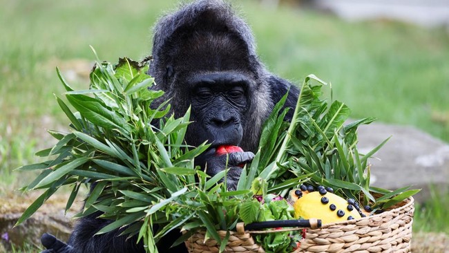 Gorila tertua di dunia merayakan ulang tahun ke-68 di Kebun Binatang Berlin. Mamalia itu dikenal dengan nama Fatou.