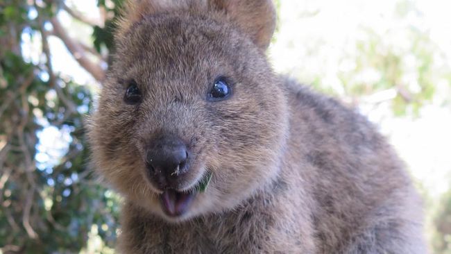 Quokka memiliki wajah yang tampak tersenyum. Hewan yang tergolong mamalia ini masih satu keluarga dengan kanguru dan walabi.