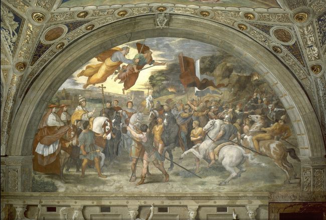 Pertemuan Paus Leo I dan Attila digambarkan dalam sebuah lukisan karya Raphael pada 1514. Karya Renaisans tersebut kini dipajang di Istana Apostolik Vatikan, yang dilalui oleh 133 kardinal kemarin saat menuju Kapel Sistina pada hari Rabu (7/5/2025) untuk memulai konklaf.
