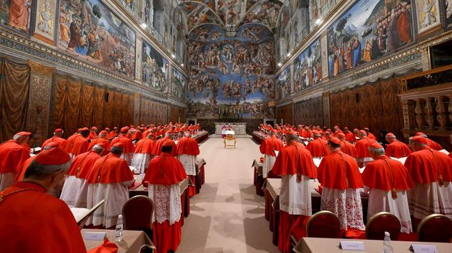 Sebanyak 133 kardinal terlihat mengenakan jubah merah saat konklaf yang berlangsung Rabu, 7 Mei 2025 sampai Kamis, 8 Mei 2025 di Kapel Sistina, Vatikan. Apa makna dari jubah merah itu?