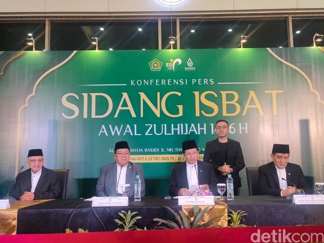 "Tanggal 1 Zulhijah jatuh pada hari Rabu tanggal 28 Mei 2025, sehingga 10 Zulhijah atau nanti Idul Adha bertepatan dengan hari Jumat tanggal 6 Juni 2025," jelas Menteri Agama Nasaruddin Umar dalam konferensi pers di Auditorium Kemenag, Jalan MH Thamrin, Jakarta Pusat, yang juga disiarkan secara daring lewat YouTube Bimas Islam Kemenag RI, Selasa (27/5/2025).