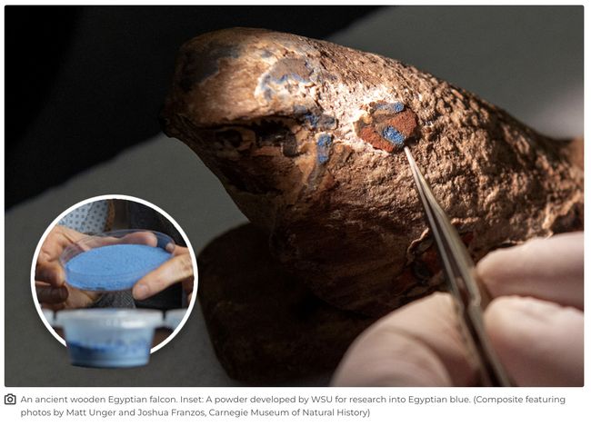 Warna biru Mesir (Egyptian blue) yang menghiasi patung, peti hingga mural di kebudayaan Mesir kuno diteliti. Orang Mesir kuno sudah bisa membuat pigmen sintetis warna biru 5.000 tahun lalu. Ilmuwan modern baru menyelidikinya kini.