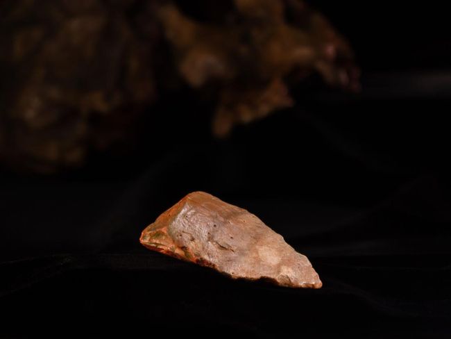 Karya manusia purba yang ditemukan dibuat di sekitar serpihan rijang (batu kapur silisifikasi). Artefak ini ditemukan bersama fosil hewan lain di sebuah situs di Sulawesi Selatan.