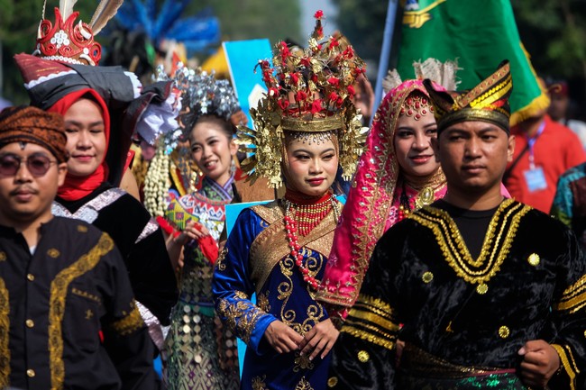 3. Pakaian yang dikenakan saat upacara yaitu Wastra Nusantara.