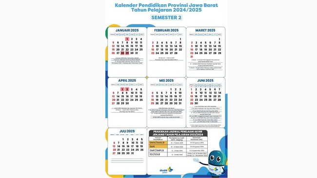 Dikutip dari kalender akademik provinsi masing-masing, seperti ini jadwal ujian akhir semester hingga libur semester ganjil 2025/2026: