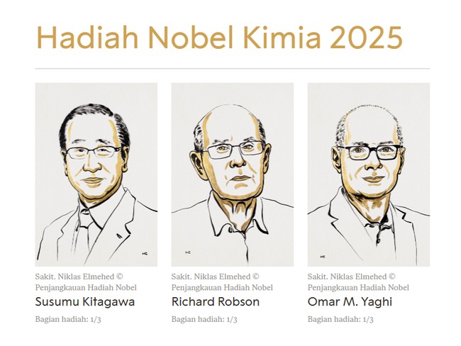 The Royal Swedish Academy of Sciences atau Akademi Ilmu Pengetahuan Kerajaan Swedia resmi mengumumkan peraih Hadiah Nobel Kimia 2025. Para penerima penghargaan tertinggi di bidang pengetahuan ini adalah Susumu Kitagawa, Richard Robson, Omar M Yaghi.