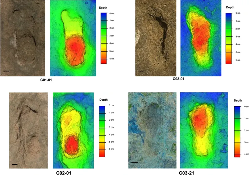 Jejak-jejak kaki purba tersebut diperkirakan milik sekelompok hominin. Beberapa di antaranya yaitu seorang anak-anak usia 1-4 tahun dan anak-anak usia 4-8 tahun.