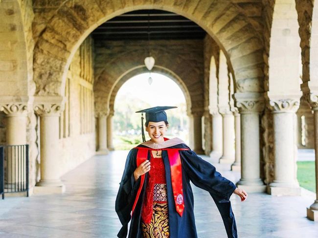 Artis berbakat dan pintar, Maudy Ayunda berhasil lulus dari Stanford University, Amerika Serikat. Stanford University bukan kampus sembarangan. Perguruan tinggi ini menduduki posisi terbaik kedua di dunia berdasarkan pemeringkatan World University Rankings Times Higher Education.