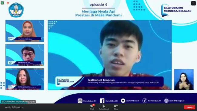 "Saat itu saya sadar, ajang ini merupakan kesempatan yang baik untuk mengasah keterampilan saya atau pun juga karakter-karakter yang diperlukan untuk mempersiapkan masa depan," cerita Teo dalam diskusi virtual Silaturahmi Merdeka Belajar episode ke-4 yang bertajuk "Menjaga Nyala Api Prestasi di Masa Pandemi", Kamis (26/8/2021).