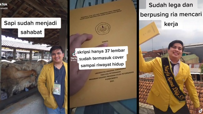 Video tersebut diunggah Nurfa Rama Dika di akun Tiktok @dika_rama98, Senin (23/8/2021). Tim detikEdu sudah mendapatkan izin Dika untuk mengutip postingan alumnus S1 Peternakan Unsoed, Purwokerto ini.