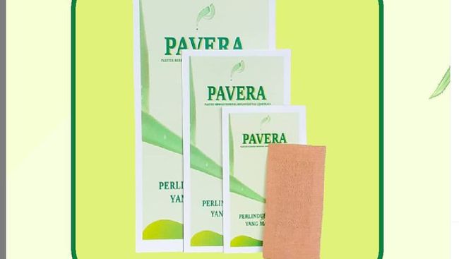 Pavera dikemas dalam kemasan primer yang berisi 1 pcs plester, dan kemasan sekunder yang berisi 25 pcs plester.