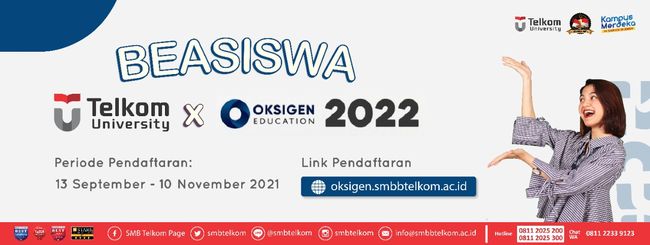 Info selengkapnya terkait beasiswa bisa cek di laman https://smb.telkomuniversity.ac.id/beasiswa-oksigen.