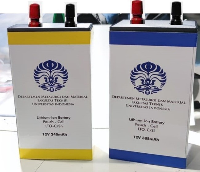Baterai Lithium-Ion ini dibuat dari material LTO yang dicampur dengan timah (Sn) dan karbon aktif (C) serta LTO yang dicampur dengan Silikon (Si) dan karbon aktif (C). Campuran tersebut menghasilkan masing-masing komposit LTO/C-Sn dan LTO/C-Si sebagai material aktif anoda dan Lithium Ferro Phospate (LFP) sebagai material aktif katoda.