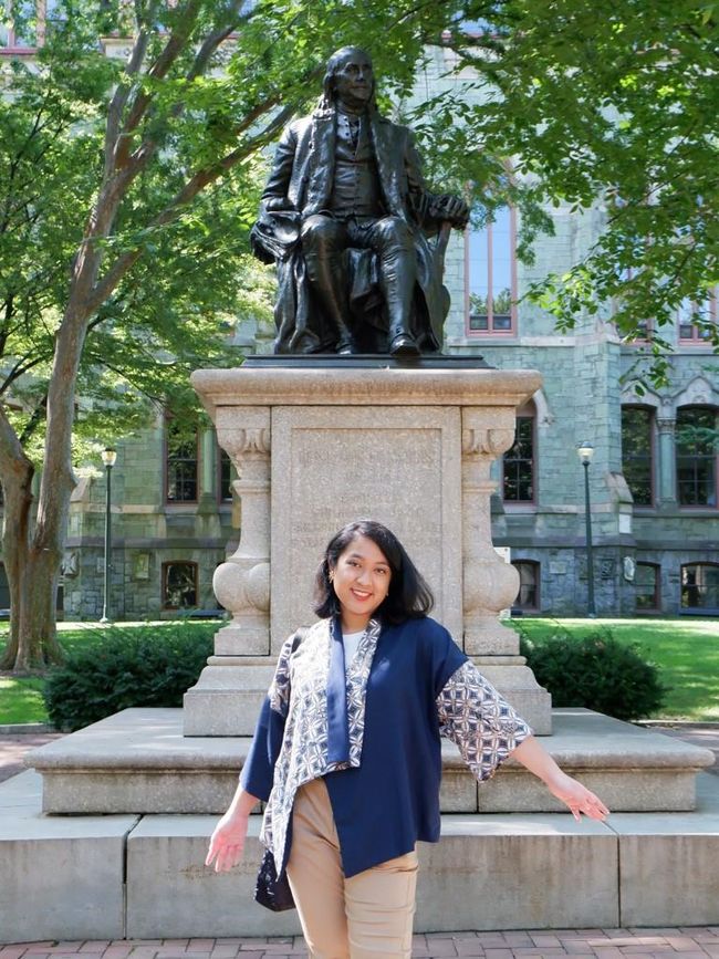 "Aku memilih UPenn karena memiliki biotech department yang bagus dan memang bercita-cita kuliah di Amerika, terutama untuk S2. Selain itu, aku juga dapat berbahasa Inggris dengan lancar sehingga percaya diri dan bisa menjalani adaptasi dan komunikasi dengan baik," paparnya.