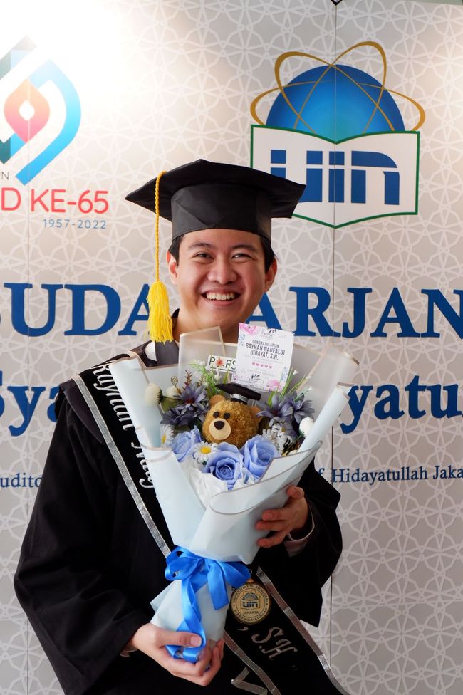 Rayhan Naufaldi Hidayat lulus dengan IPK 3.94 sebagai Wisudawan Terbaik tingkat Program Studi Ilmu Hukum, Fakultas Syariah dan Hukum, Universitas Islam Negeri (UIN) Syarif Hidayatullah Jakarta. Ia merampungkan studi dengan skripsi yang berjudul Pemanfaatan Alat Bantu Coblos bagi Tunanetra dalam Pemilihan Umum Serentak 2019 di Jakarta Selatan. Bagaimana kisah mahasiswa tunanetra ini sekolah di sekolah umum, kuliah di UIN Jakarta, hingga menjadi lulusan terbaik?