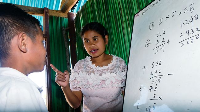 "Saya mengajar semua mata pelajaran. Tantangannya di buku sumber yang tidak ada, jadi materi saya cari sembarang saja. Saya harus berusaha keras untuk materi itu. Jadi saya ajarkan semua yang saya tahu saja," sambungnya.