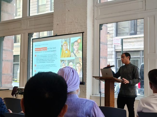 "Program ini merupakan program yang paling saya banggakan. Guru penggerak bertujuan untuk menciptakan pemimpin pembelajaran yang berpusat pada murid. Di sini kami ajarkan leadership hingga management," tutur Nadiem saat menyampaikan paparannya yang berjudul "Emancipated Learning: Perspectives and Challenges in Transforming an Education System" di New York University (NYU), Jumat (16/9/2022) waktu New York.