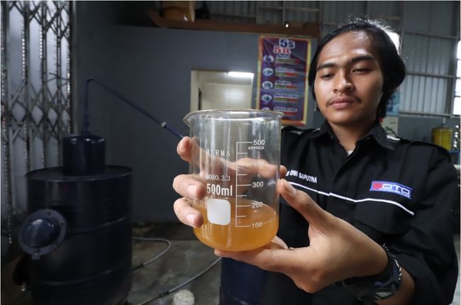 Mahasiswa program studi Mesin Otomotif angkatan 2020 itu menjabarkan, proses pembuatan BBM dilakukan dengan proses distilasi dengan memanaskan sampah yang telah digunting kecil, dicuci, dan dijemur.