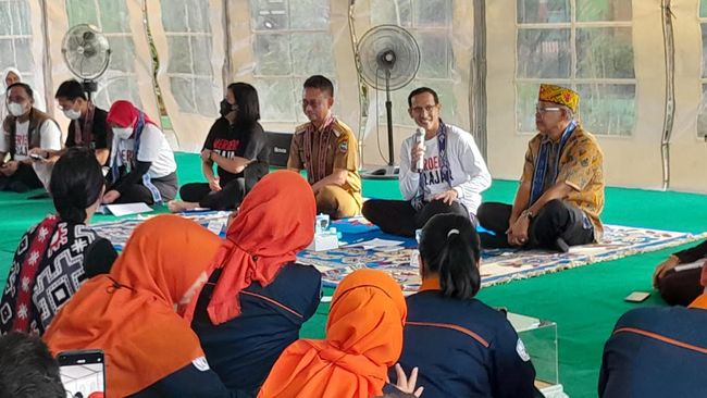 Menteri Pendidikan, Kebudayaan, Riset, dan Teknologi Nadiem Makarim berdialog dengan sekitar 60 guru penggerak di Kalimantan Barat, Senin (24/10/2022).