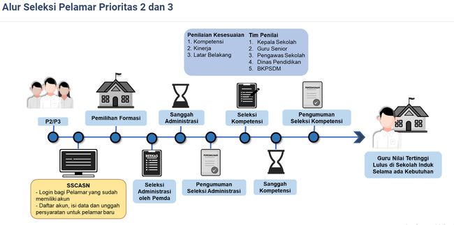 8. Penilaian kesesuaian oleh pengawas, kepala sekolah, serta guru senior untuk pelamar prioritas 2 dan 3: 21-22 November 2022