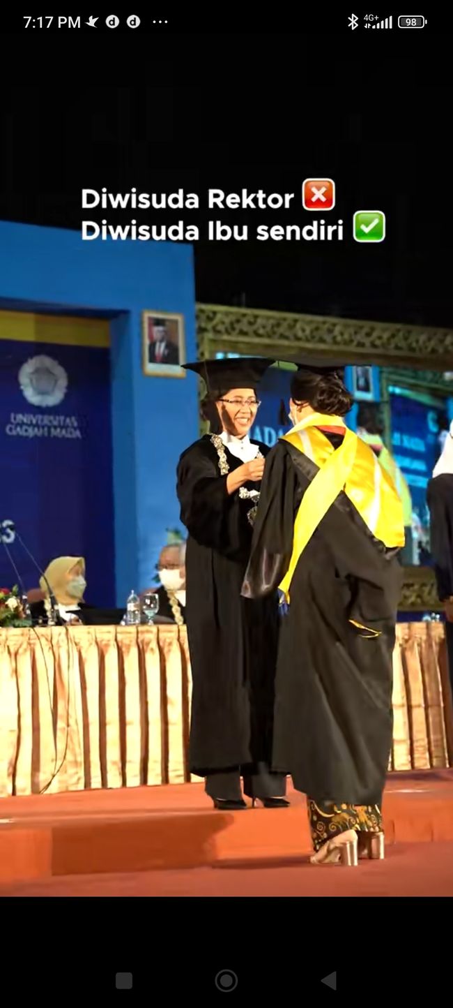 Momen ibu mewisuda anak ini pun diunggah dalam Tiktok UGM. Sempat viral, Rektor UGM itu mengungkapkan perasaannya mewisuda putri sulungnya.