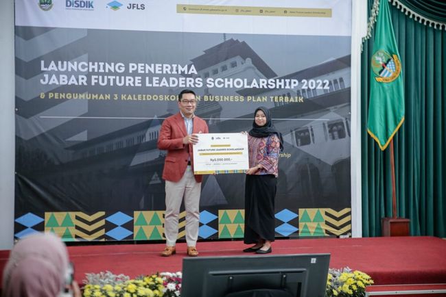 Dengan pakaian batik, mahasiswa perwakilan timnya itu terlihat sumringah berpose dengan Gubernur Jawa Barat, Ridwan Kamil. Prestasi kembali ia torehkan melalui penghargaan business plan terbaik pada program pendampingan Jabar Future Leaders Scholarship (JFLS) 2022.