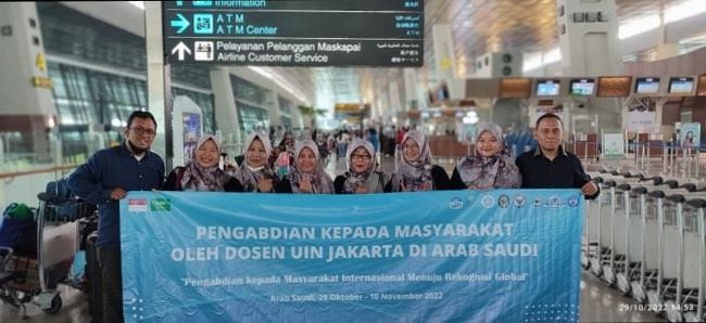 Dosen Universitas Islam Negeri (UIN) Syarif Hidayatullah Jakarta melakukan kegiatan pengabdian kepada masyarakat di Arab Saudi, 29 Oktober-10 November 2022. Pelaksanaan kegiatan pengabdian ini merupakan yang pertama dilakukan di Sekolah Indonesia Makkah dan di Sekolah Indonesia Jeddah.