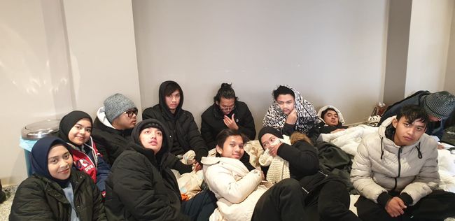 Hingga Selasa (7/2) pukul 12 siang,Dhilla dan pelajari RI masih di lokasi pengungsian. Ia mengaku kondisi di tempat pengungsian lumayan kondusif.
