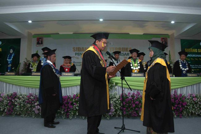 Ada yang beda dalam proses pengukuhan guru besar baru Institut Agama Islam Negeri (IAIN) Kudus pada 10 Februari 2023 lalu. Pasalnya, Rektor IAIN Kudus Prof Dr H Abdurrohman Kasdi, Lc, MSi mengukuhkan Prof Dr Hj Umma Farida, Lc MA sebagai guru besar kelima, yang mana merupakan istri dari sang rektor.