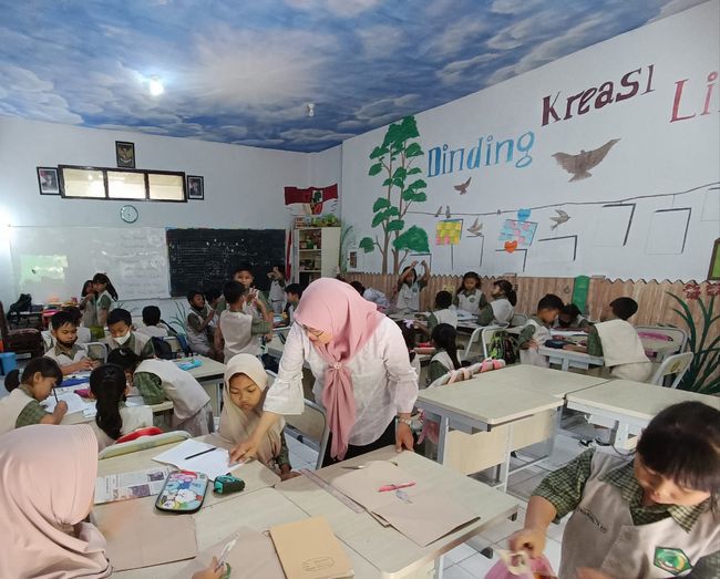 Alhasil, siswa-siswa kelas 2 SD di kelasnya senang bermain, ngobrol, dan bersekolah bersama, tidak membeda-bedakan teman.