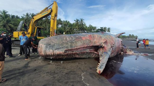 Sebelumnya, Badan Nasional Penanggulangan Bencana (BNPB) dan warga setempat mencoba menyelamatkan paus sperma tersebut ke laut. Namun sayang, paus itu kembali terdampar dan ditemukan mati.
