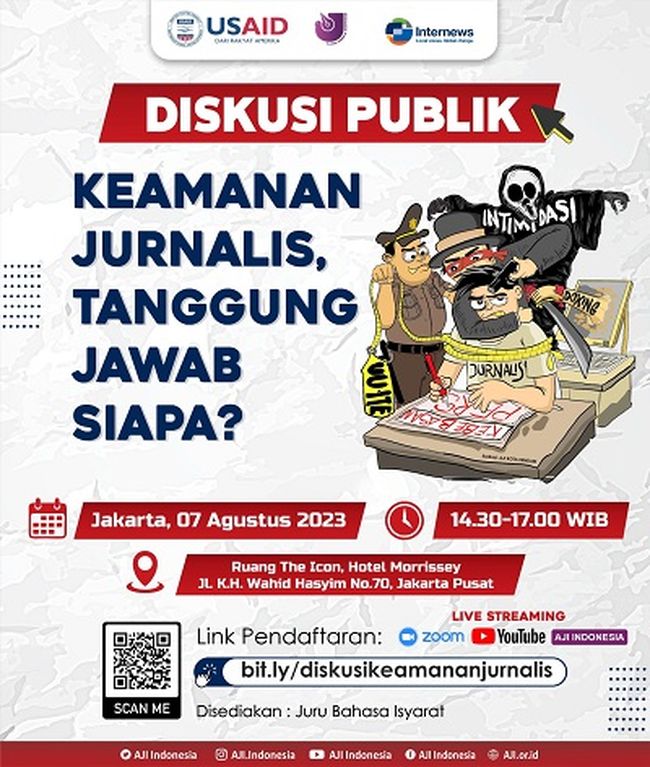 Untuk menjawab pertanyaan di atas AJI bekerjasama dengan USAID dan Internews menggelar diskusi publik dengan tema "Keamanan Jurnalis, Tanggung Jawab Siapa?".