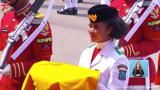 Itulah sosok Lilly Wenda pembawa baki nasional pada upacara 17 Agustus 2023. Selamat merayakan HUT ke-78 RI, detikers!