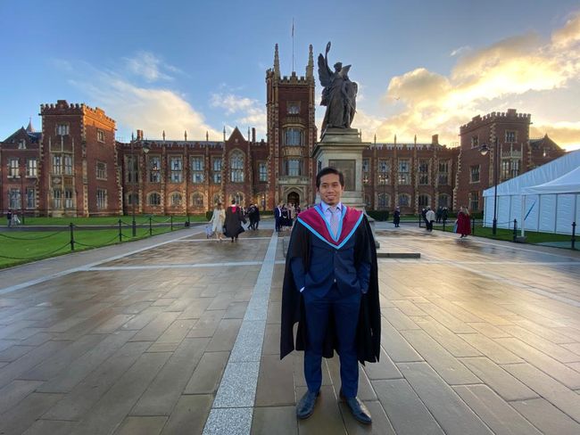 "Ada beberapa alasan, saya ingin meningkatkan bahasa Inggris saya yang sangat kurang. Kedua, kebetulan tertarik dengan tema penelitian nanomedicine, kemudian tertarik dengan profesornya. Profesornya punya perusahaan. Di Inggris banyak profesor yang punya start up, seperti profesor yang menciptakan vaksin covid Astra Zeneca. Para profesor itu punya startup yang dibawahi kampus dan di-support kampus," paparnya menjelaskan mengapa dia memilih kampus tujuan S2-nya.