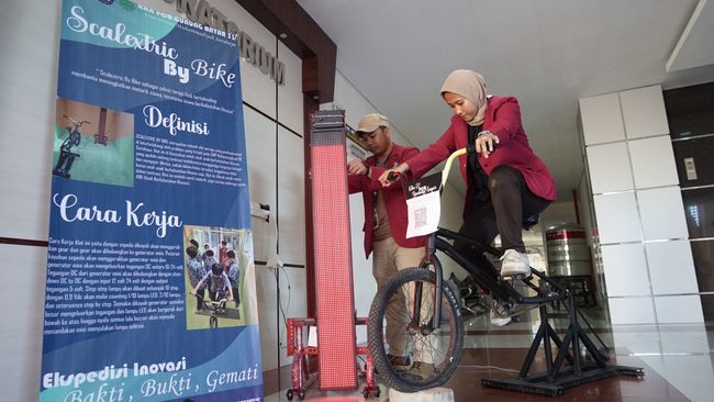 "Jadi semakin banyak dikayuh maka generator semakin besar mengeluarkan tegangan dan lampu LED akan bergerak dari bawah ke atas hingga nyala semua lalu buzzer akan menyala menandakan misi menyalakan lampu selesai," tambahnya.