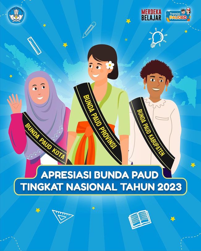 Kementerian Pendidikan Kebudayaan Riset dan Teknologi (Kemendikbud) mengadakan ajang Apresiasi Bunda PAUD tingkat nasional 2023. Pendaftaran dibuka hingga 22 September 2023 pukul 23.59 WIB.
