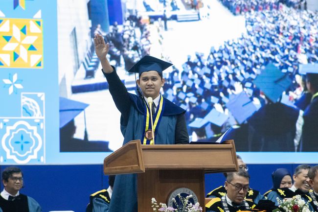 Atas prestasinya tersebut, peraih beasiswa afirmasi untuk mahasiswa daerah tertinggal, terluar dan terdepan (3T) ini pun didaulat mewakili wisudawan untuk berpidato dalam acara wisuda pada 28 Oktober 2023 lalu.